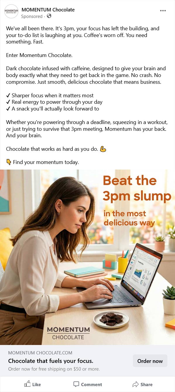 - Create a content strategy and product launch campaign featuring Facebook ads and E-commerce product pages.