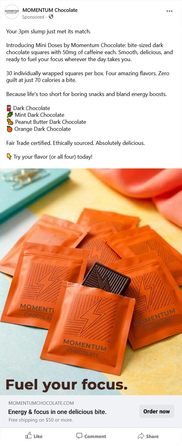 Momentum Chocolate is a new brand of deliciously smooth dark chocolate infused with caffeine. (The most delicious way to beat the afternoon slump!)